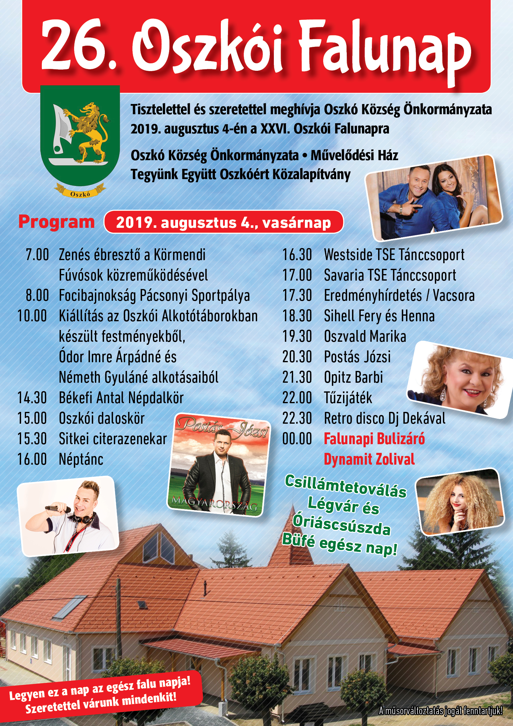 FALUNAP Post author:Oszkó Körjegyzőség Post published:2019. július 18. csütörtök Post category:Oszkói Hírek You Might Also Like Címváltozás 2012. március 20. kedd Előadások a Győrvári Általános Iskolában 2010. április 15. csütörtök Orbán-napi Hegyi Vigadalom a szőlőhegyen 2014. május 13. kedd